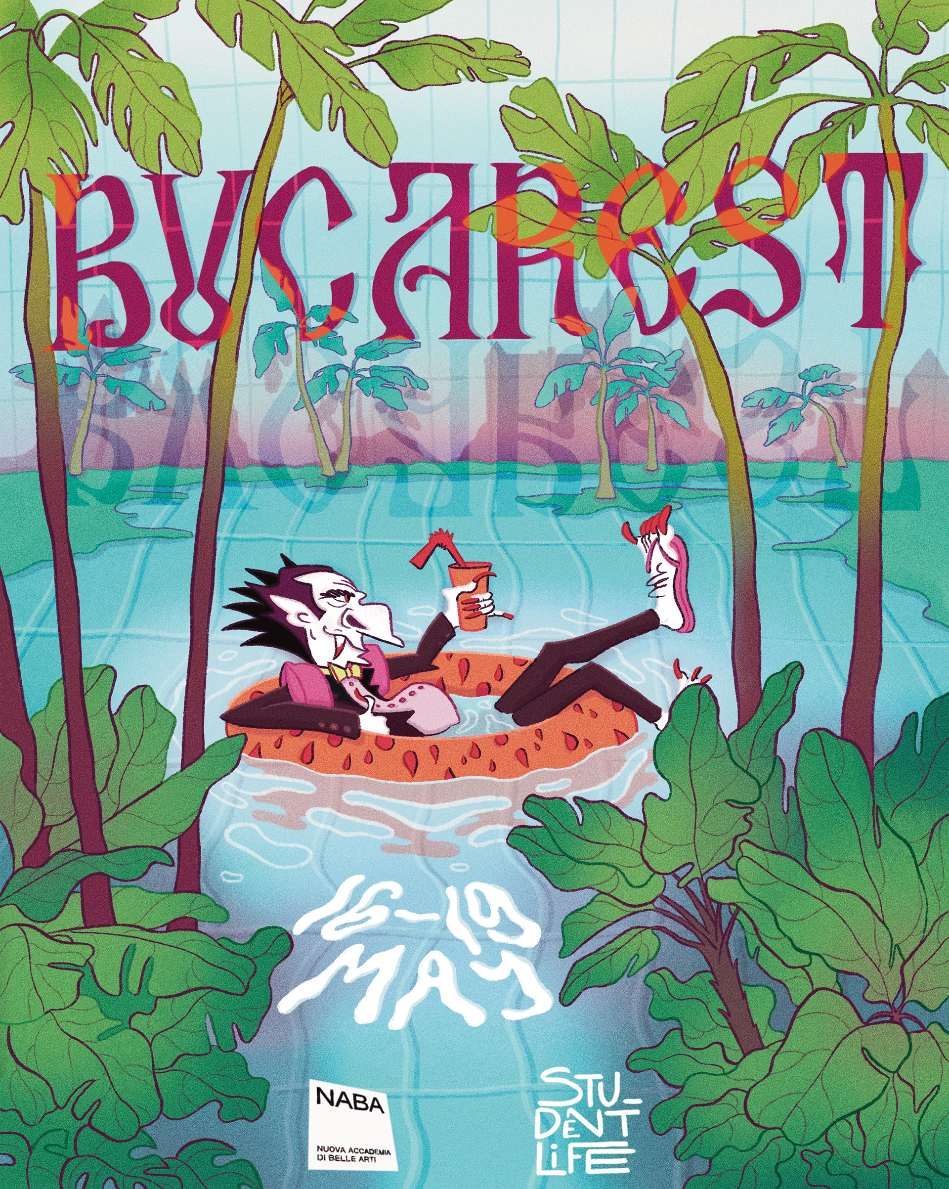 Illustrations for promotion of different events organized by Student Life in NABA. TRIP TO BUCAREST.